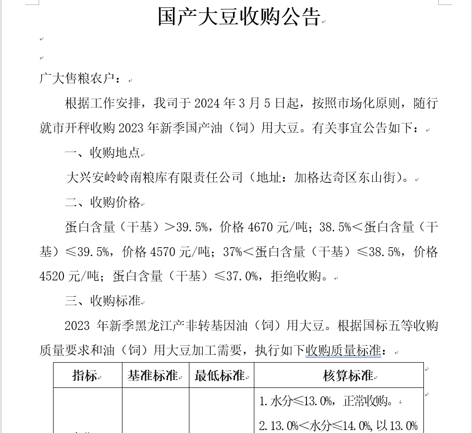 國內(nèi)大豆收購市場的最新動態(tài)也反映了整個大豆產(chǎn)業(yè)的發(fā)展趨勢,從種植、收購到消費,每一個環(huán)節(jié)都緊密相連,共同推動大豆產(chǎn)業(yè)的進步,隨著市場的不斷變化和政策的持續(xù)支持,國內(nèi)大豆收購市場將迎來更加廣闊的發(fā)展前景,也需要關(guān)注國際市場的影響,如貿(mào)易政策、國際市場價格等因素,這些都會對國內(nèi)大豆收購市場產(chǎn)生影響。