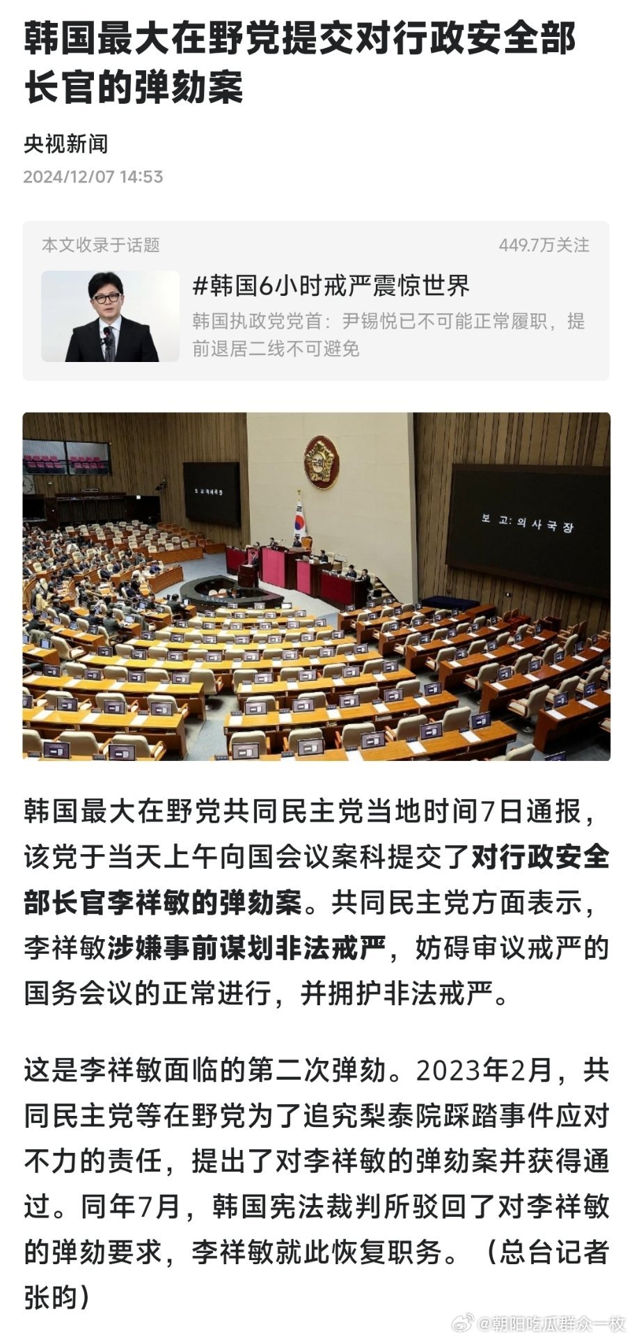 突然,李樂的手機(jī)彈出一條新聞推送——“韓國政局最新消息:政變”,他笑著提議,以這個(gè)新聞為主題,分享一些輕松有趣的小故事,來度過這個(gè)美好的下午時(shí)光。